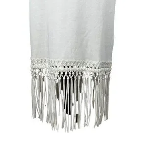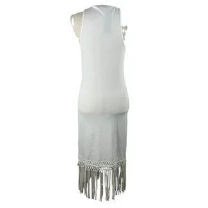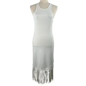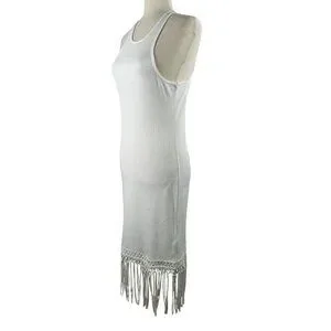 FRENCH CONNECTION Summer White Tank Midi Dress with Crochet Trim Fringe