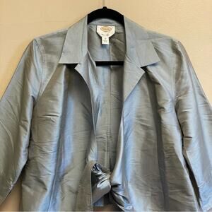 Talbots M 100% silk blazer metallic blue business casual