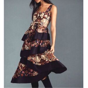 Anthropologie Square-Neck Printed Tiered Midi Dress, NEW