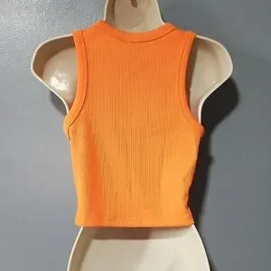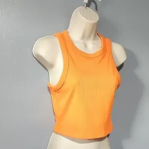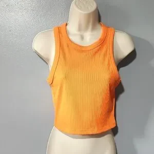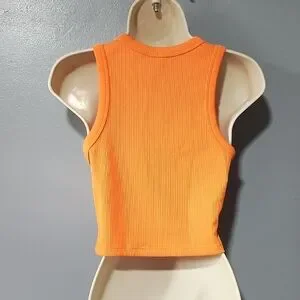 Add a pop of color with this bright orange H&M tank vest cropped top . Ideal for sunny days in a size medium that measures pit to pit unstretched 39" unstretched, shoulder to hemline 16.5" ,new without tags never worn,model isn't wearing the actual top for sale she's just for giving an idea of look.
