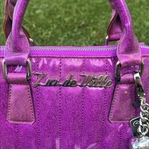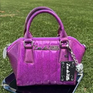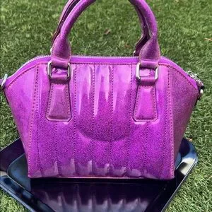 Lux de Ville purple sparkle purse with cross body strap. New with tags. See photos for areas of slight discoloration. Comes with dust bag and skull bauble.