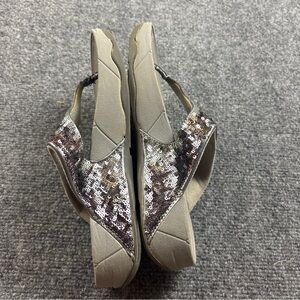 FITFLOP Women’s Grey Lulu Glitter Toe-Post Sandals Flip Flops size: 8