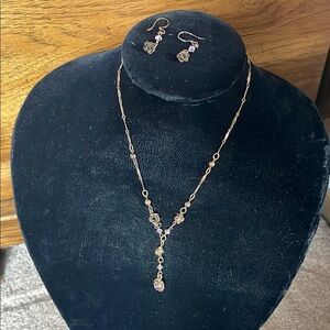 Elegant antique Gold and Purple flower Necklace and Earring Set