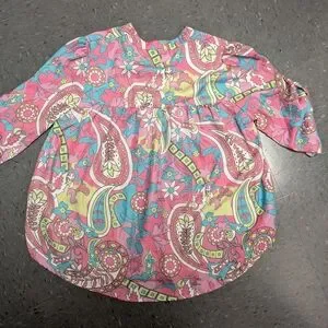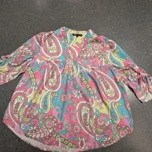 Embrace vibrant style with this colorful paisley blouse. Perfect for adding a pop of color to your wardrobe.