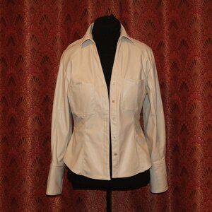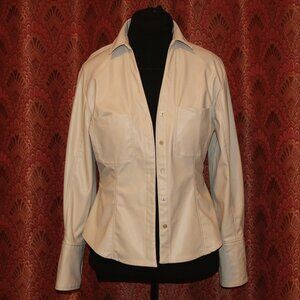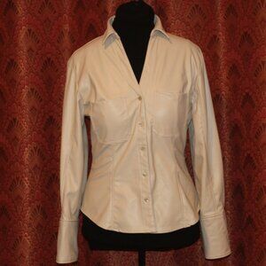 ZARA FAUX LEATHER SHIRT SHACKET, Button Up Front, Tailored fit, open front pockets on chest, long 4 button cuffs in Cream Ecru Tan Beige