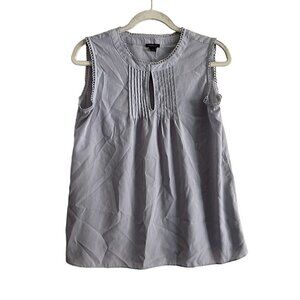 Ann Taylor Women SZ S Gray Sleeveless Sewn Pleated Neckline Blouse
