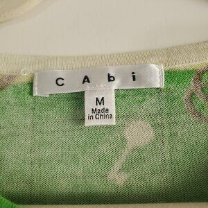 Cabi Printed Cardigan Sweater Medium Green Yellow Preppy Twee Novelty Vintage