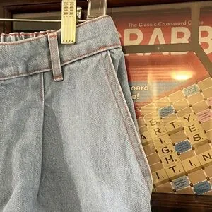 Big Bud Press Small Petite Trouser Jean, Light Blue Wash with Orange Stitching