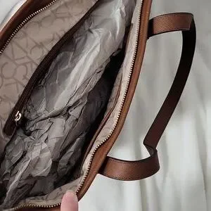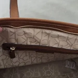 Stylish Calvin Klein tote with signature monogram. Dark brown hue. Ideal for daily use. Never used ,brand new