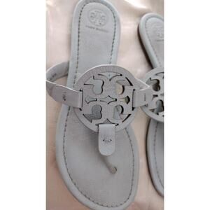 Tory Burch Sandals Womens Size 8.5 Light Blue Gray Miller Leather Logo Thong 47051