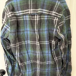 Stylish checkered flannel with button-up design. Includes a convenient chest pocket.