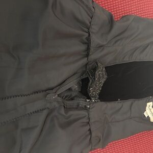 VINTAGE GOOD CONDITION VICTOR COSTA black taffeta gown of black and metallic gold lace, strapless, with a velvet bodice. I found another one of these gowns on Ebay listed for $350. Beautiful evening gown, perfect for dancing the night away. Previous owners have done some fittings from out inspection, however everything is intact, gently worn. Please refer to the pictures of the dress lining. If you want to stand out of a crowd, this gown will do it for you.