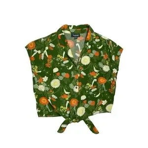 ModCloth Floral Tie-Front Button Down Blouse โ Size L