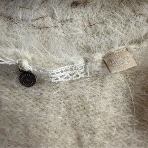 Anthropologie Knitted & Knotted Soiree Open Sweater White Gold Sequin Medium