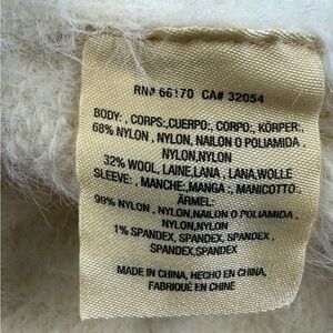 Fabric- Body- 68% Nylon, 32% Wool, Sleeve- 99% Nylon, 1% Spandex