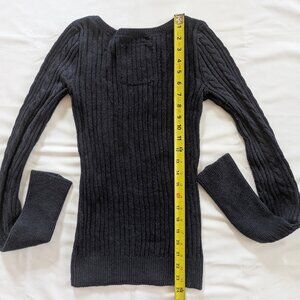 Nice long sleeve sweater. Sleeves can be rolled or it's great if you have long arms. Sweater is a women's medium, quite stretchy. Measurements in photos.
