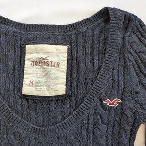 Hollister Cable Knit Sweater Navy Blue Women's Medium Long Sleeve Scoop Neck M