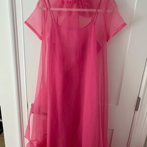 Pink Calluna Dress in Size XS. Worn once and in mint condition. Currently available on My Theresa at full price!! Gorgeous for black tie events. Tulle overlay with separate cotton slip dress. Bow at back neck.