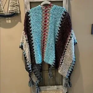 Embrace style with this multicolor poncho. One size. Perfect for adding a pop of color to your wardrobe. Total length in back is 26”.