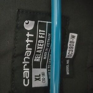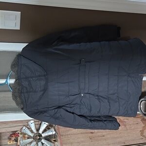 Warm Carhartt parka with a hood. Features a zip-up front and spacious pockets.