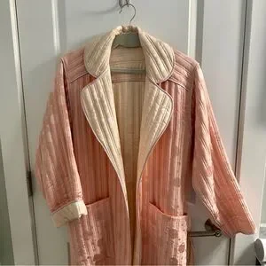 Vintage Fernando Sanches Pink and Cream Quilted Robe 100% Silk