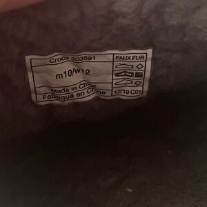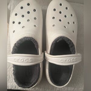 M10/W/12 CROCS Women's White Fuzzy Lined Moccasins