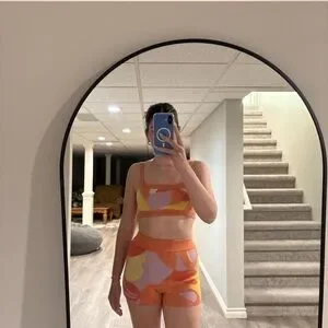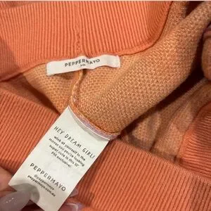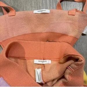 Chic knit top and skirt set in coral. Perfect for casual outings.