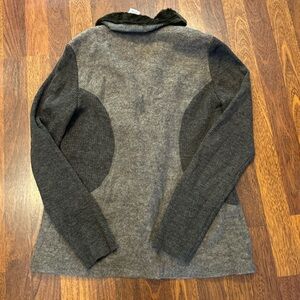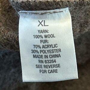 Roz & Ali Brown Wool Cardigan Sweater Blazer Shacket Faux Fir Collar Size XL