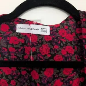 Beautiful floral wrap dress by Faithfull the Brand. I believe this is the Sumaia dress, but this is a mini dress style (not midi). Puff sleeves and elastic cuffs. Size is a US 10, but runs small - in my opinion fits more like an 8 or 6. Fabric does not stretch. Great used condition.