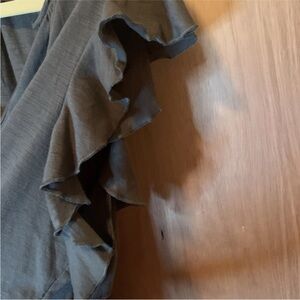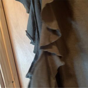 Armpit to pit is about 29 inches. Length from shoulder is about 28 1/2 inches. V-neckline, ruffles sleeves. In good condition. Pre owed.