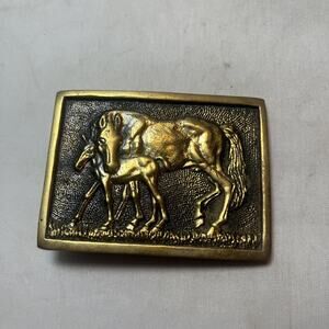 BTS • Horse and Colt Solid Brass Belt Buckle U.S.A. 1978 3.25 x 2.25"
