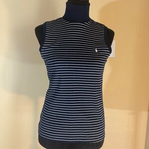 WOMEN'S GOLF turtle neck, signature navy. & white Ralph Lauren stripes. FORE!!!