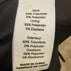69% triacetate/31% polyester; lining: 95% polyester/5% spandex