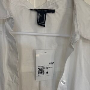 Classic white button down shirt. Short sleeves. Lightweight fabric. Perfect for casual wear.