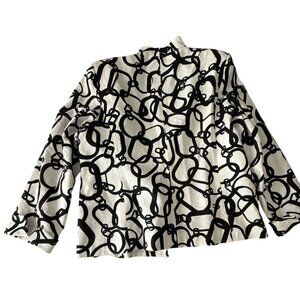 This elegant jacket by Investments features a striking black and white chain print, ideal for elevating your wardrobe. Crafted from 100% cotton, it offers both comfort and style. The jacket's unique pattern adds a touch of sophistication, making it suitable for various professional settings.