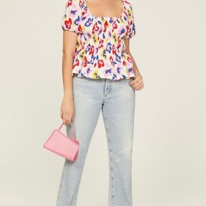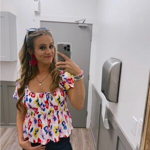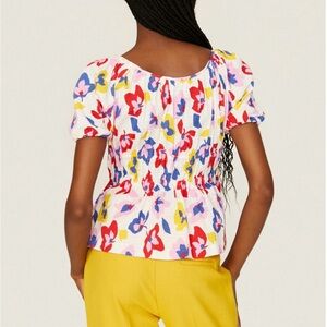 Vibrant floral puff sleeve top. Stylist Notes