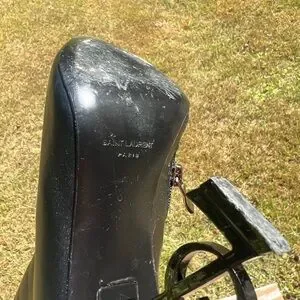 Chic and stylish heeled boots. Iconic design with signature logo heel. Perfect for a bold statement.