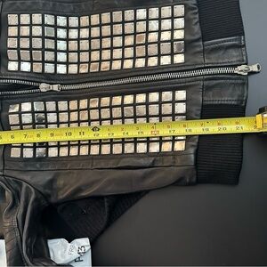 Sleek black leather jacket. Ideal for a modern look. Mint condition no missing stones. This could also fit an xs