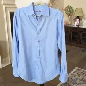 Robert Graham Button Down Shirt Light Blue Long Sleeve Formal Shirt M