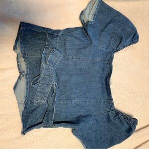 Blue Denim Button Down Puff Sleeve Top