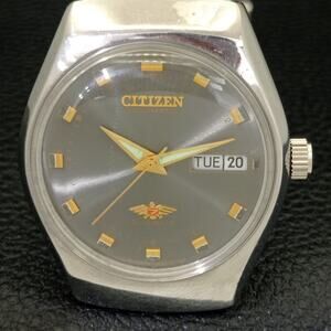 Vintage 1973 Citizen Automatic Mens Silver Watch W/daydate & Gold accents