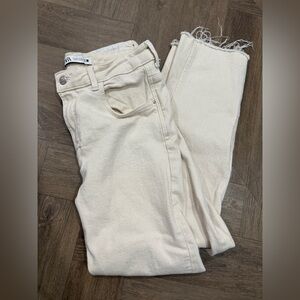 Chic ankle-length jeans in cream. Perfect blend of comfort and style.