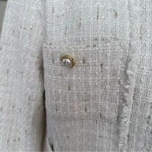This elegant white tweed jacket offers a sophisticated look with its classic design and textured fabric. Perfect for any occasion, it adds a touch of class to your wardrobe. Coco Chanel vibe on this beautiful blazer. Measurements: