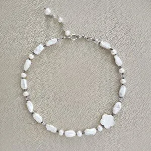 WHITE BAROQUE PEARL MIX NECKLACE-16"