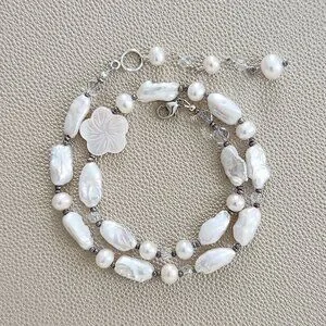 Mix of white freshwater baroque pearls, white freshwater pearls, clear quartz, mother of pearl