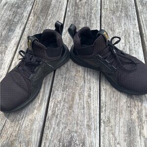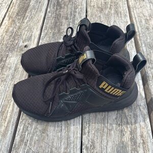 Elevate your look with these PUMA sneakers. Sleek black with gold accents. Perfect for any outfit.