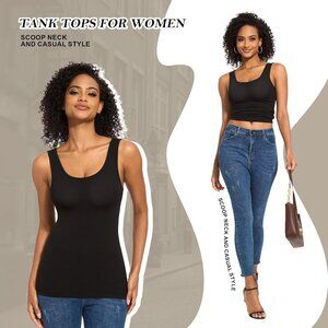 Features: This set of five tank tops is all about effortless style and comfort. Made from a soft, stretchy blend of 95% rayon and 5% spandex, they feel super gentle on the skin and have a nice moderate thickness for great coverage. The scoop neck adds a flattering touch, and these sleeveless tops are perfect for layering or wearing on their own.