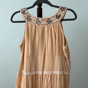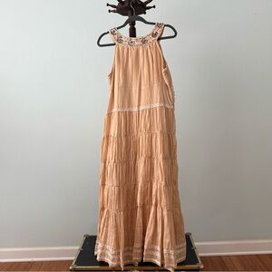 Vintage Signé Danish Boho Dress Tiered Beaded Sz L