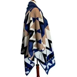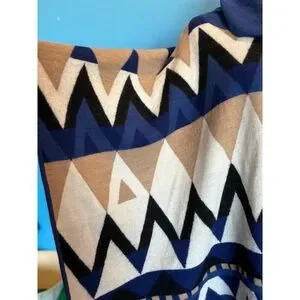 Peruvian Connection Poncho, Cowl Neck, Beautiful Blue/Black/Ivory/Beige Geometric