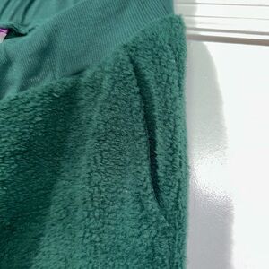 Plush forest green fleece hoodie with sweat pants. Pants have front pockets. Very soft. Draw string hoodie and pants. Ideal for cozy days or cool weather. Size M